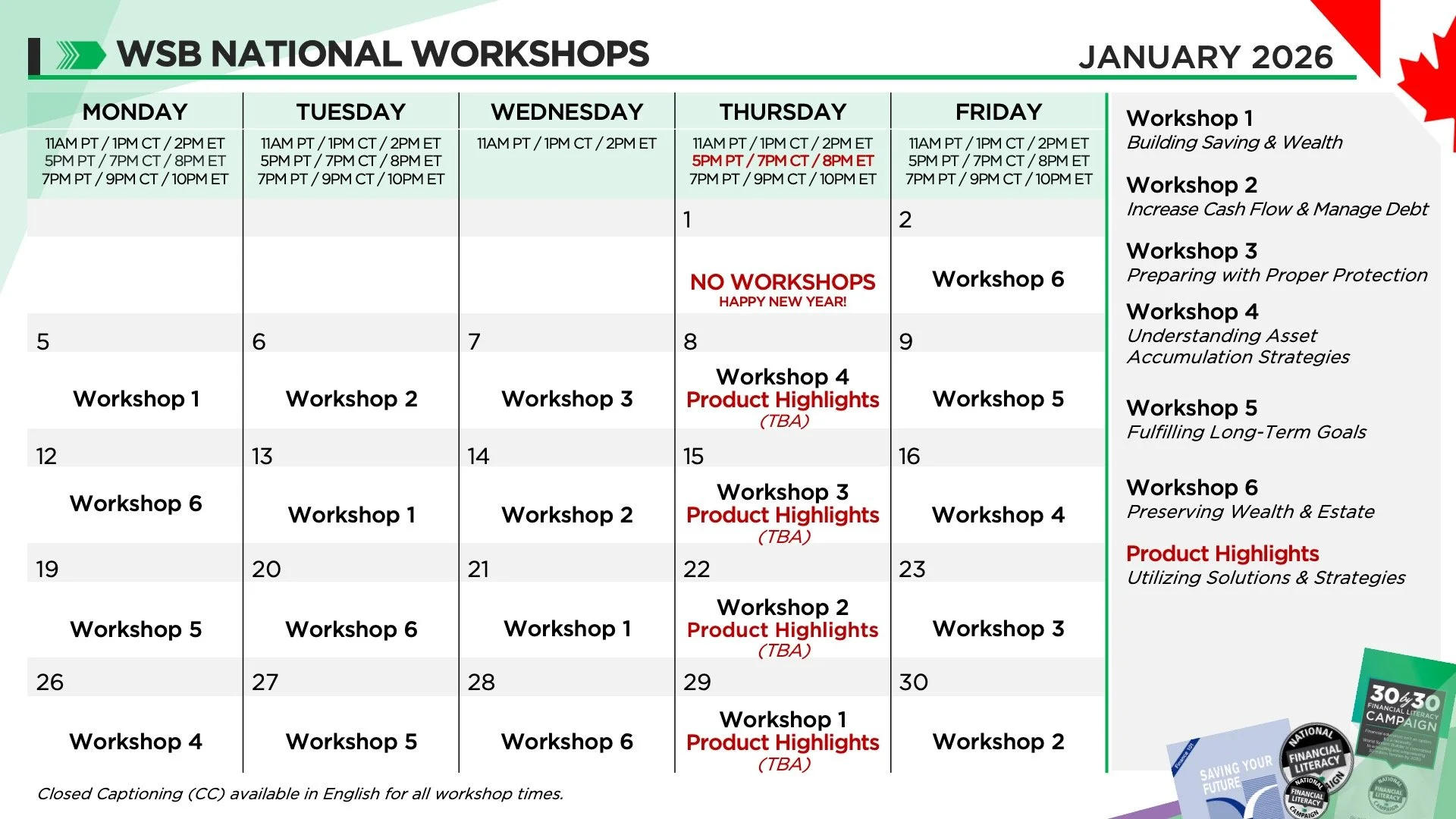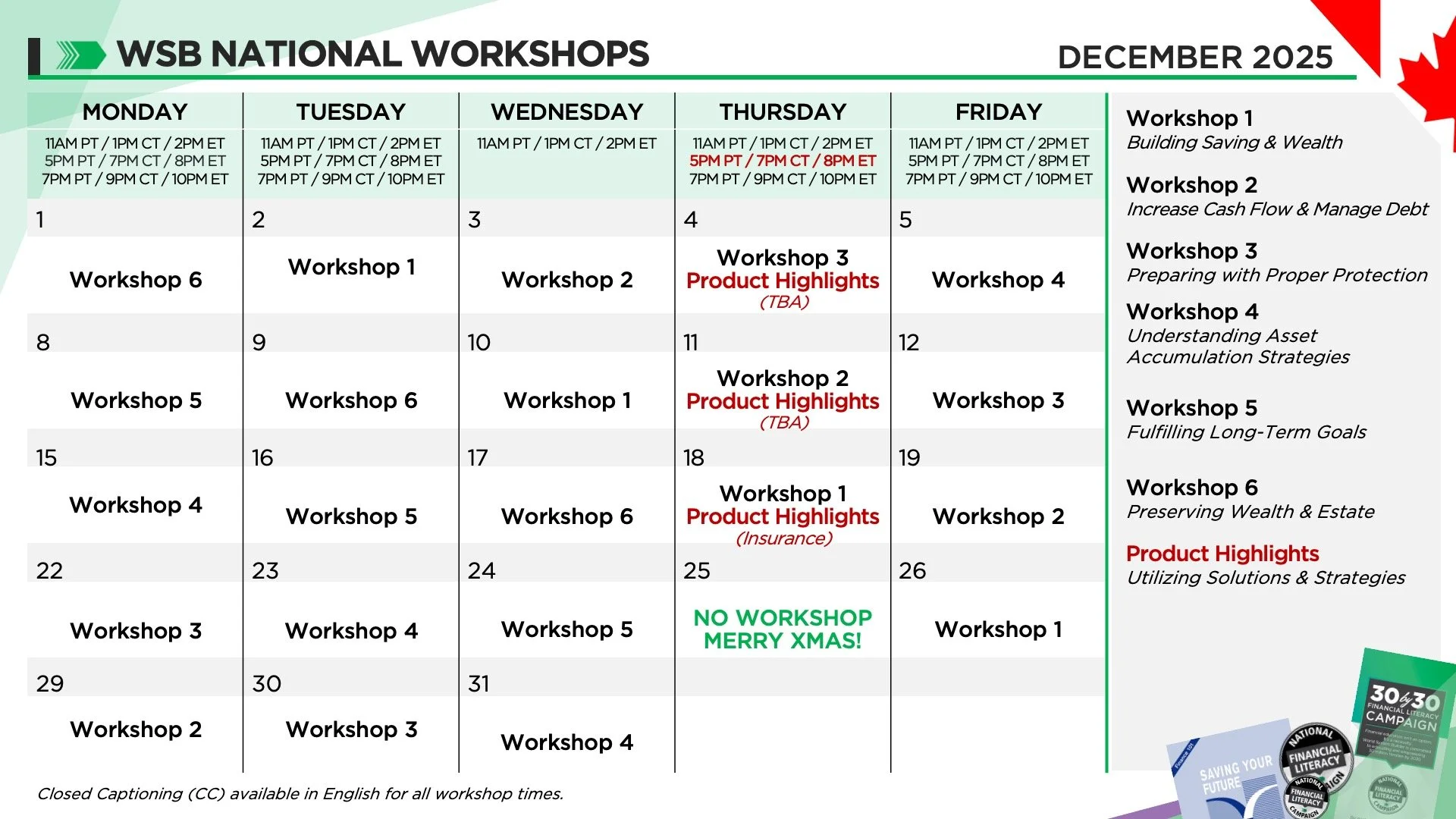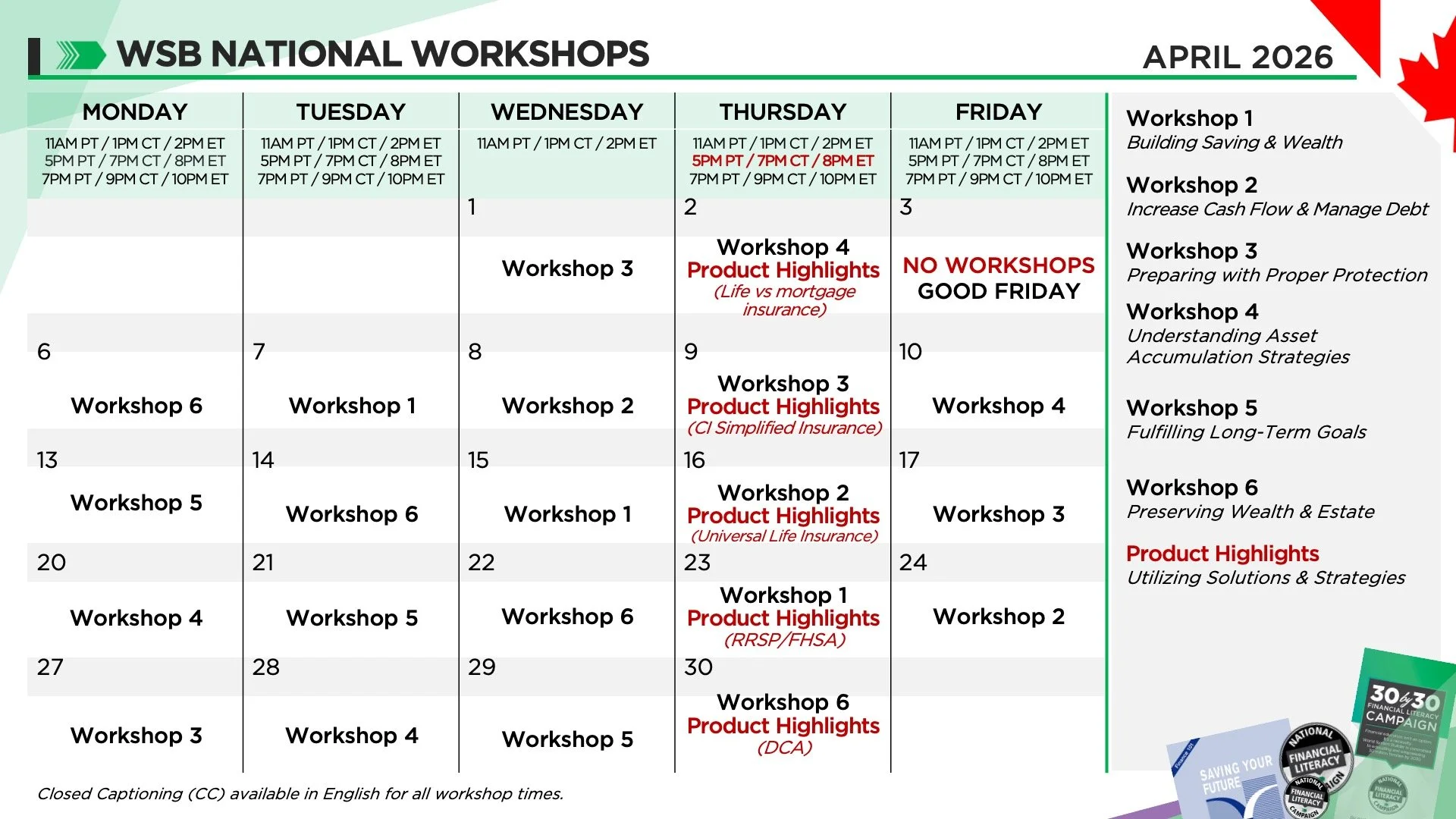 Our Workshops which are offered in various languages including English, French, Chinese, Spanish & Vietnamese happen two to three times a day! You can even attend completely for free, from the comfort of your home online!